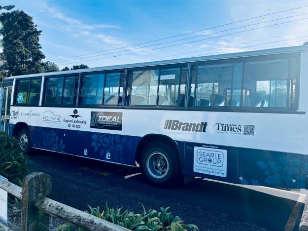 David Henshaw’s Farmer Jock cartoon characters, bigger than they’ve ever been seen before, proudly adorn the Pukekohe East School bus.