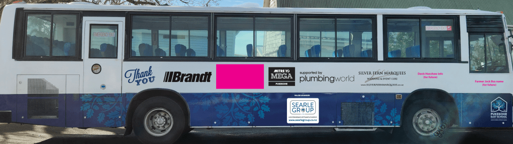 Advertising revenue helps to keep the wheels turning for the kids of Pukekohe East. Pukekohe East School has the only remaining cooperatively-owned school bus in New Zealand, tracing its origins back to 1946. The school bus gets no government funding. We are 100% community-funded.