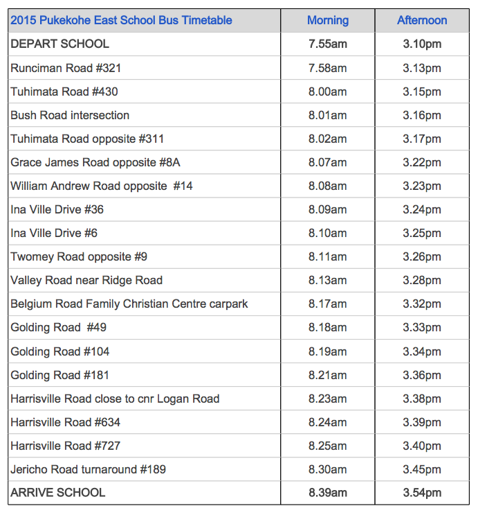 This term the school bus route is being reviewed by the bus society executive to determine the optimum school bus route for 2016.