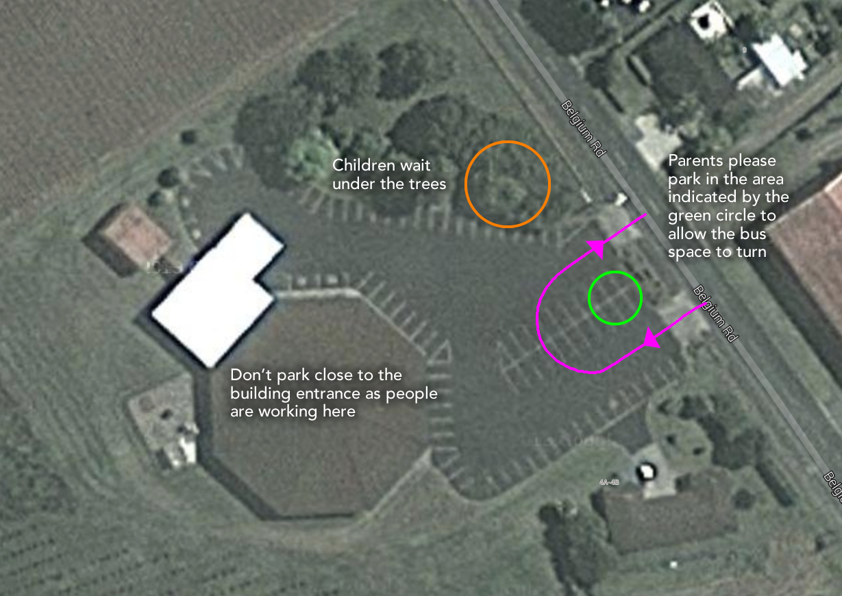 Our new large bus cannot easily turn right out of the school carpark, and indeed it’s impossible to make that right turn when there are vehicles parked on the opposite side of the road. Early on when the new larger bus had been starting its previous route with a right turn from the school it would often be delayed up to 10 mins waiting for cars to be moved from the grass verge opposite. A further advantage of turning left and employing an anti-clockwise bus route is that it avoids delays encountered at the intersection of Runciman Road and Pukekohe East Road, where there is often a queue of parents’ cars turning right.